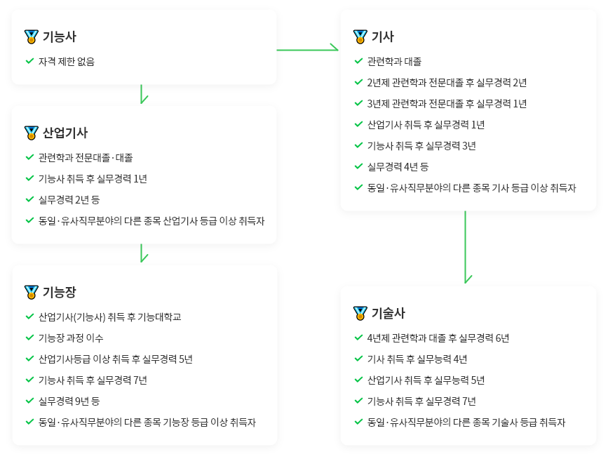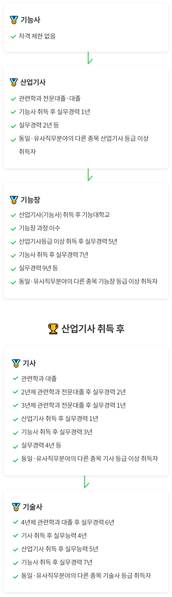 | 기능사 | 객관식 4지 택일형 총 60문항 100점 만점에 60점 이상 | 작업형 실기시험 100점 만점에 60점 이상 |